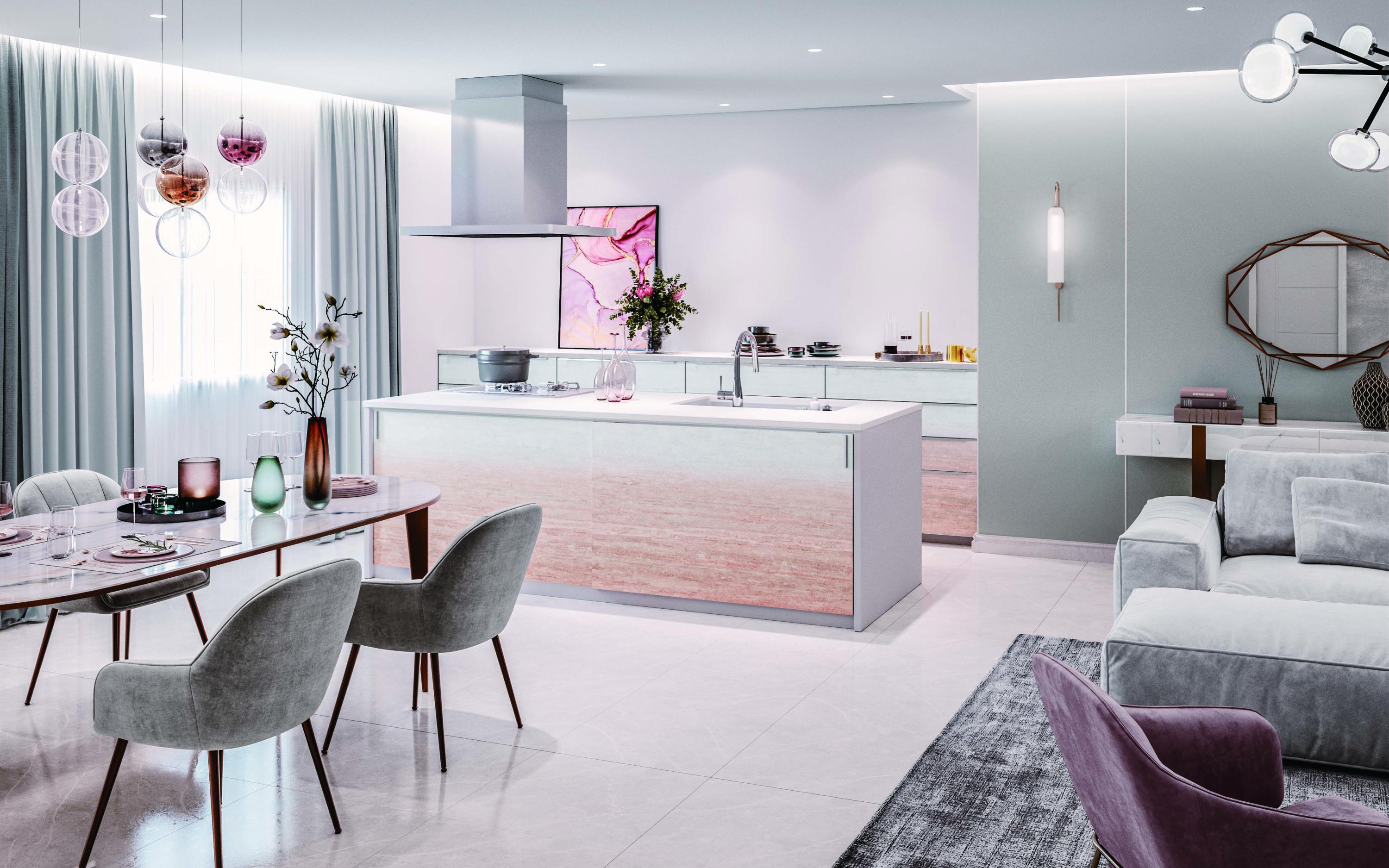 高低轉角櫃,配有兩層琺瑯內抽,